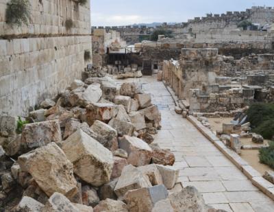 This picture shows the remains of a street in Jerusalem, excavated by archaeologists. This street passed down the side of the wall which formed the western side of the Temple Mount, on which the Jerusalem Temple was built. This street would have been in use at the time of Jesus and it is likely that Jesus walked along it.